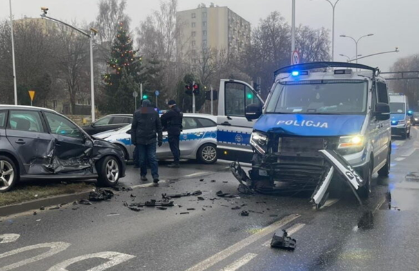 Do wypadku doszło w sobotę, 27 grudnia, tuż przed godziną 13.30, na skrzyżowaniu ulic Źródłowej i Solidarności w Kielcach. Jak wynika ze wstępnych ustaleń, policyjny patrol oddziału prewencji jechał na sygnałach uprzywilejowania i wjechał na skrzyżowanie mimo czerwonego światła.