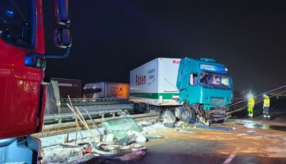 To jednak nie był koniec nocnego dramatu. Na leżący już na drodze pojazd najechała kolejna ciężarówka. Kierowca nie miał szans na skuteczne hamowanie.