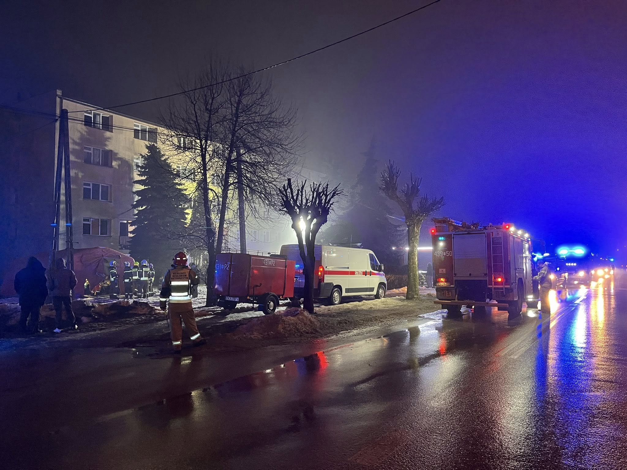 Po północy otrzymaliśmy dyspozycje udania się do pożaru budynku wielorodzinnego w Końskich.