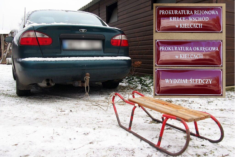 Środa, 28 stycznia, godzina 23:00. Ulica Inwestycyjna w Nowinach zamieniła się w tor przeszkód dla osobowej Skody. Do haka holowniczego przywiązano sanki, na których siedziało dwóch kolegów kierowcy (21 i 22 lata). Niestety, fizyka nie wybacza błędów.
